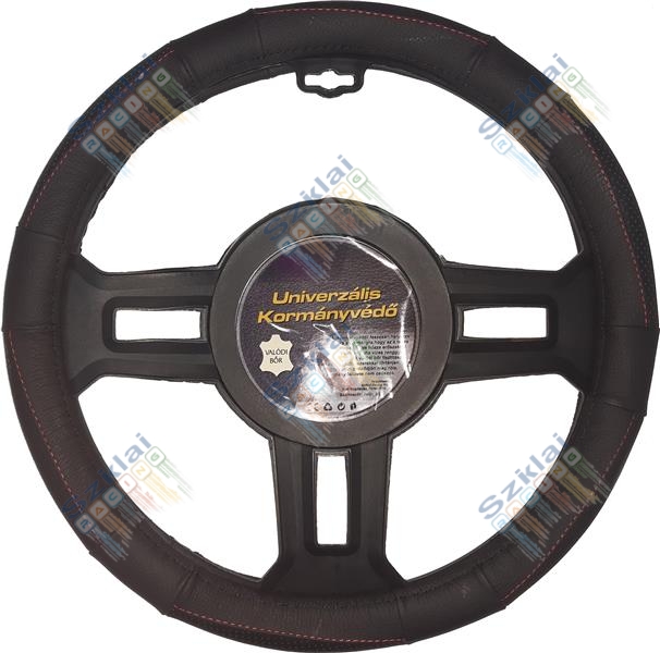 Katalógus | Alkatrészek/felszerelés | Belső tér | Kormányvédők > Kormányvédő, fekete bőr, piros varrással, 37-39 cm (*)