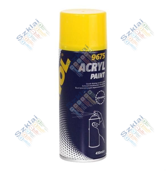 A MANNOL Acryl Paint egy gyorsan száradó akrilfesték gyors és tartós felni festéshez. Alkalmas alu és acél felnik, lengéscsillapítók, lakk és más matt vagy karcos felületek festék felújításához.