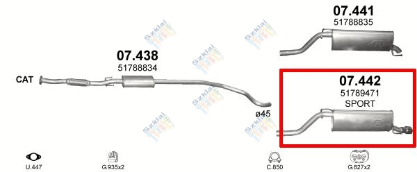 Katalógus | Kipufogók és tartozékok. | Kipufogók | Fiat > Kipufogó, hátsó, FIAT Grande Punto, Corsa D Hatchback, 1.4, 2005-2009.12