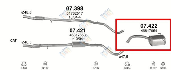 Katalógus | Kipufogók és tartozékok. | Kipufogók | Fiat > Kipufogó, hátsó, Fiat Panda II, 500, 1.3-1.4, 2003-