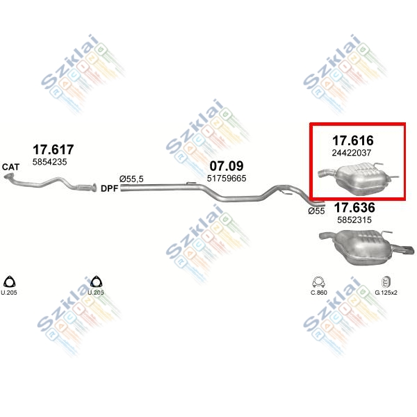 Katalógus | Nem besorolt > Kipufogó, hátsó, Opel Vectra C Hatchback, Sedan, Fiat Chroma Kombi, 1.9-2.2, 2002-2011
