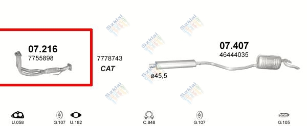 Katalógus | Nem besorolt > Kipufogó, leömlőcső, Fiat Punto hatchback 1.2, 1993-1997 (KC)
