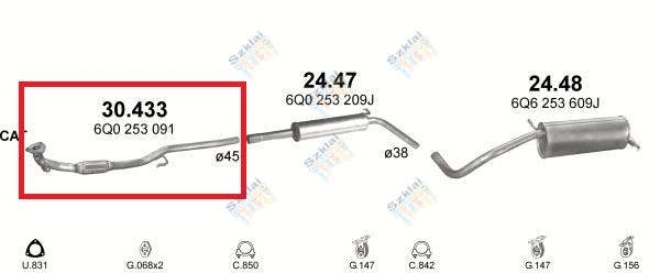 Katalógus | Nem besorolt > Kipufogócső, első, Seat Ibiza/Cordoba, Skoda Fabia, VW Polo 1.2, 2001-2005