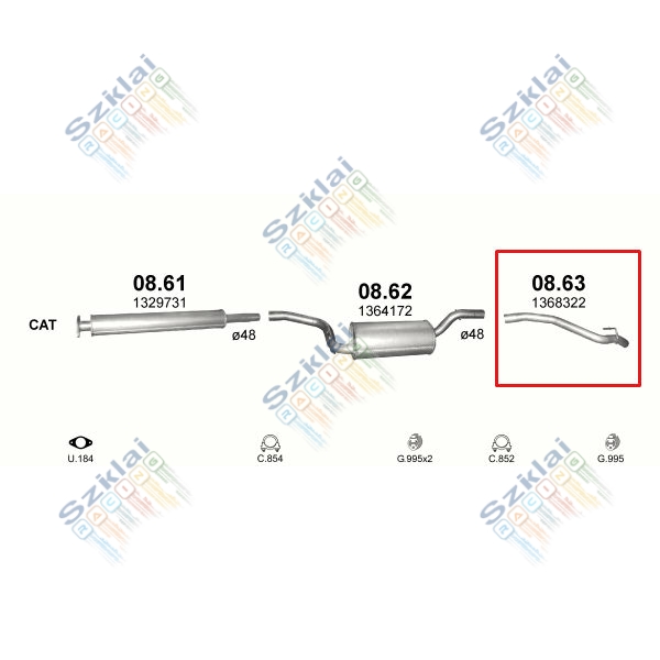 Katalógus | Nem besorolt > Kipufogócső, hátsó, Ford C-Max, Focus, 1.6-2.0, 2003-2011.07