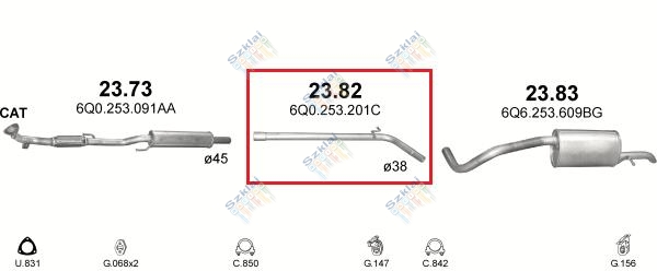 Katalógus | Nem besorolt > Kipufogócső, közép, Seat Ibiza, Fabia, VW Fox, Polo, 1.2, 2005-2011.12