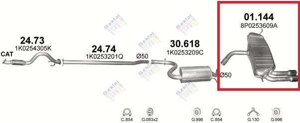 Katalógus | Nem besorolt > Kipufogódob, hátsó, Audi A3 1.4-2.0, 2007.09-2013.03