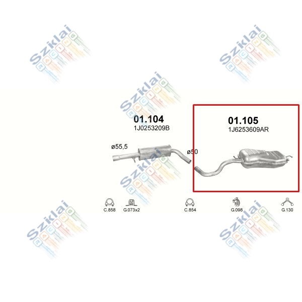 Katalógus | Nem besorolt > Kipufogódob, hátsó, Audi A3, Seat Leon, VW Golf IV, Beetle, 1.6-2.0, 1997-2007.07