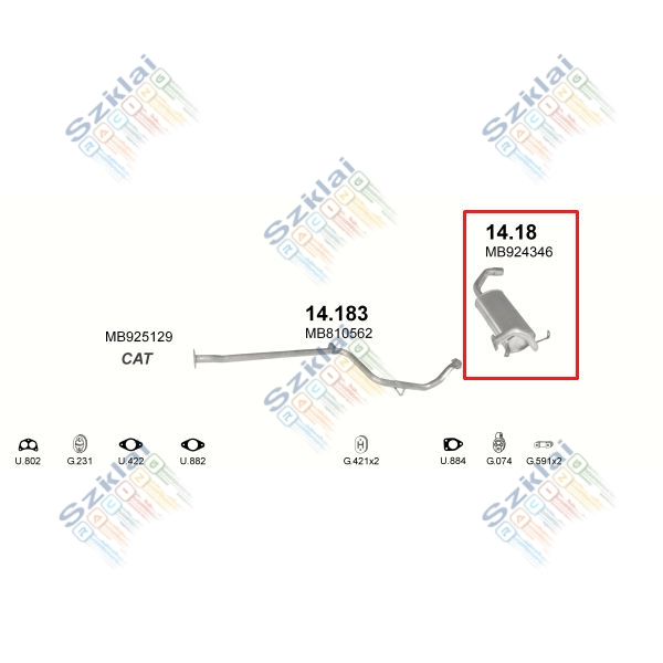 Katalógus | Nem besorolt > Kipufogódob, hátsó, Mitsubishi Colt 1.3-1.6, 1992-2003.06