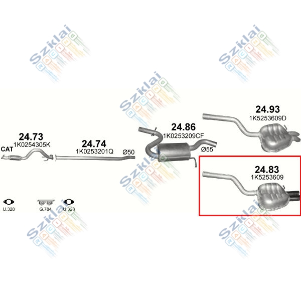 Katalógus | Nem besorolt > Kipufogódob, hátsó, Skoda Octavia II, VW Jetta, Golf IV, V, Jetta III, V, 1.4-2.0, 2004-