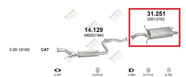 Katalógus | Nem besorolt > Kipufogódob, hátsó, Volvo V40/S40 1.6/1.8/1.9D, 1996-2000