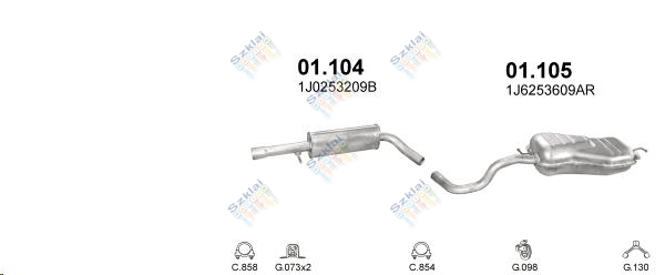 Katalógus | Nem besorolt > Kipufogódob, közép, Audi A3, Seat Leon, Toledo, Skoda Octavia, VW Golf IV, 1.6-2.0, 1996-2007