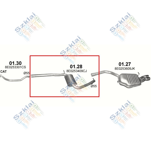Katalógus | Nem besorolt > Kipufogódob, közép, Audi A4 1.9/2.0, 2004-2008