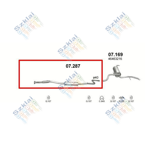 Katalógus | Nem besorolt > Kipufogódob, közép, Fiat Albea Sedan, 1.6, 1998-2000 (KC)