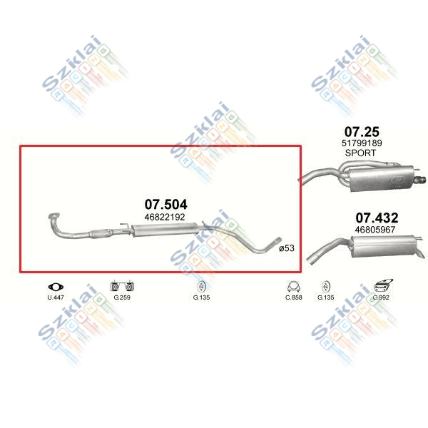 Katalógus | Nem besorolt > Kipufogódob, közép, Fiat Stilo 1.6, 2001-2006