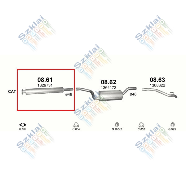 Katalógus | Nem besorolt > Kipufogódob, közép, Ford C-Max, Focus, Volvo C30, V50, S40, 1.6-2.0, 2003-2012.05