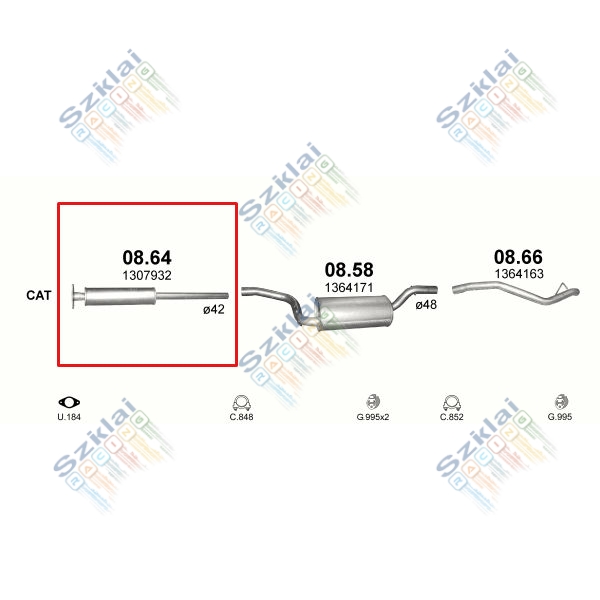 Katalógus | Nem besorolt > Kipufogódob, közép, Ford Focus, C-Max, Volvo C30, S40, 1.4-1.6, 2003-2011.07