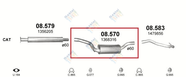 Katalógus | Nem besorolt > Kipufogódob, közép, Ford Focus C-Max, Volvo V50, S40, 2.0D, 2003-