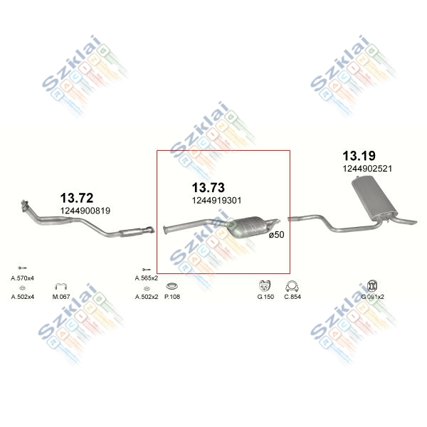 Katalógus | Nem besorolt > Kipufogódob, közép, Mercedes E200, E220, 200E, 230, 230E 2.0-2.3, 1985-1992.10 (KC)
