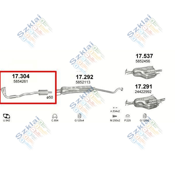 Katalógus | Nem besorolt > Kipufogódob, közép, Opel Astra G, Zafira A, 1.4-1.8, 1998-2000.09