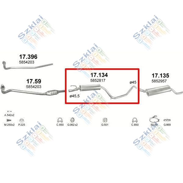 Katalógus | Nem besorolt > Kipufogódob, közép, Opel Combo, 1.2-1.7, 1993-2001.10