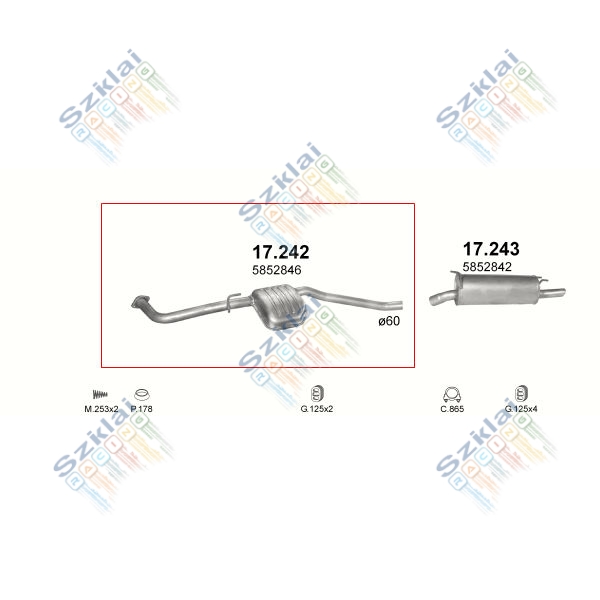Katalógus | Nem besorolt > Kipufogódob, közép, Opel Omega B, Kombi, 2.0-2.5, 1994-2003.07
