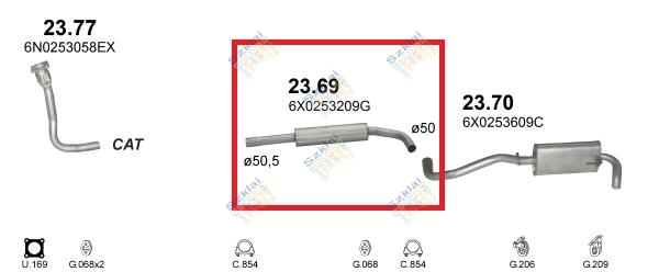 Katalógus | Nem besorolt > Kipufogódob, közép, Seat Arosa/VW Lupo 1.4D/1.7D, 1997-2005