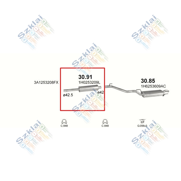 Katalógus | Nem besorolt > Kipufogódob, közép, VW Golf III, Vento, 1.8, 1995-1998.05 (KC)