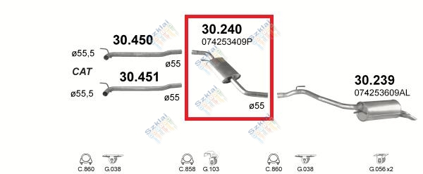 Katalógus | Nem besorolt > Kipufogódob, közép, VW T4 2.5D, 1996-2003
