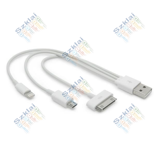 Katalógus | Telefon tartozékok | Töltők, kábelek > Töltőkábel 3in1, fehér, 20cm