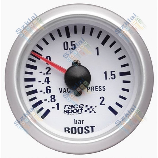 Katalógus | Tuning és versenysport | Beltér | Műszerek és műszertartók > Turbónyomás mérő óra, RACE SPORT, Ø52mm, 12V