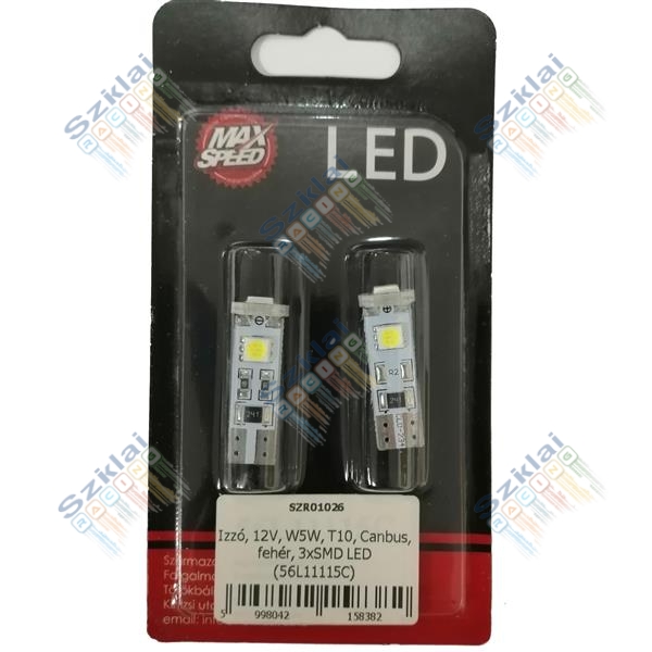 Katalógus | Világítástechnika | Izzók | SMD > Izzó, 12V, W5W, T10, Canbus, fehér, 3xSMD LED (56L11115C)